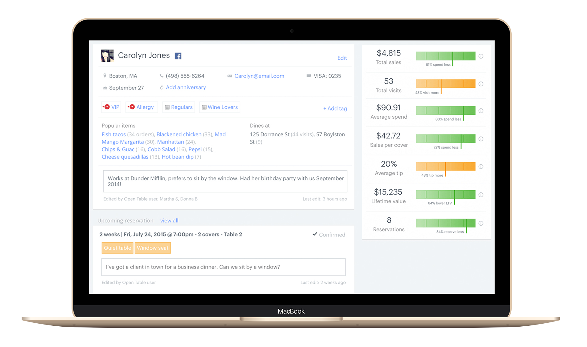 Uses your restaurant systems to build a complete database of your customers. It provides a granular understanding of who they are, what they spend, what their preferences are, sales trends, and ways to best tailor their experiences.